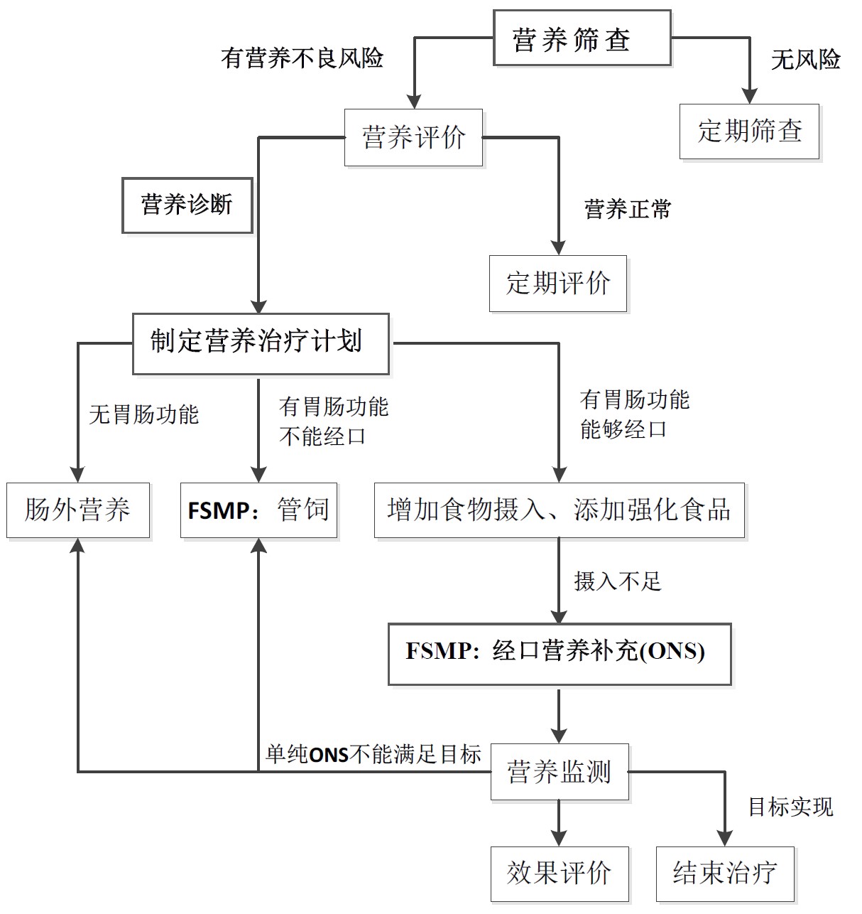 针对已完成注册的特殊医学用途配方食品,在医疗机构内的处方流程,应在医师或临床营养师的指导下进行。应在医疗机构内设立专门机构实施规范化管理,包含遴选、临床效果评价、储存、处方、审核、不良事件登记以及退出机制。临床应用时应以营养筛查及评价为依据,掌握适应证及禁忌证,按照营养诊疗流程规范应用特殊医学用途配方食品。