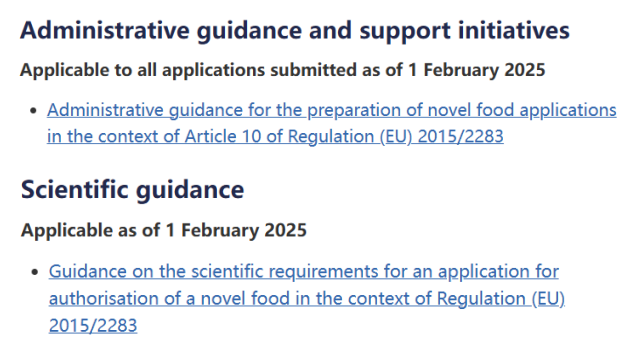 自2018年新型食品法规出台,EFSA便发布了多份指南文件,以便于申请人高效准确地准备并提交申报材料。2024年9月,EFSA就系列新型食品申报指南文件进行了更新, 重点指南文件包括: