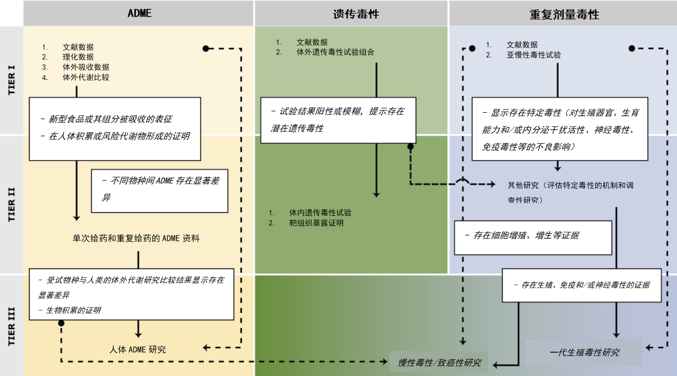 ADME、遗传毒性、重复剂量毒性试验间的相互关系图
