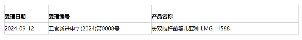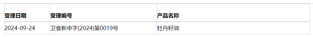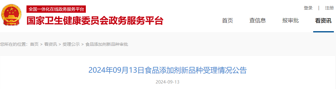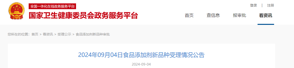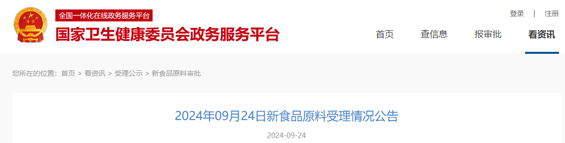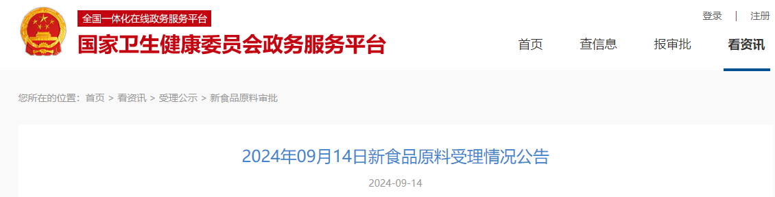 2024年9月1日至9月30日,国家卫生健康委员会政务服务平台发布三新食品受理情况,新增5款新食品原料受理(长双岐杆菌婴儿亚种LMG 11588、神经酸油、牡丹籽油等)、新增3款食品添加剂新品种受理(丙二醇、低聚半乳糖等)、8款食品相关产品新品种受理(己二酸等)。