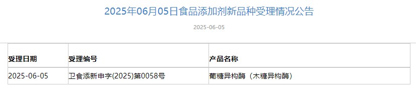 1 | 2025-06-05 | 卫食添新申字(2025)第0058号 | 葡糖异构酶(木糖异构酶) |
