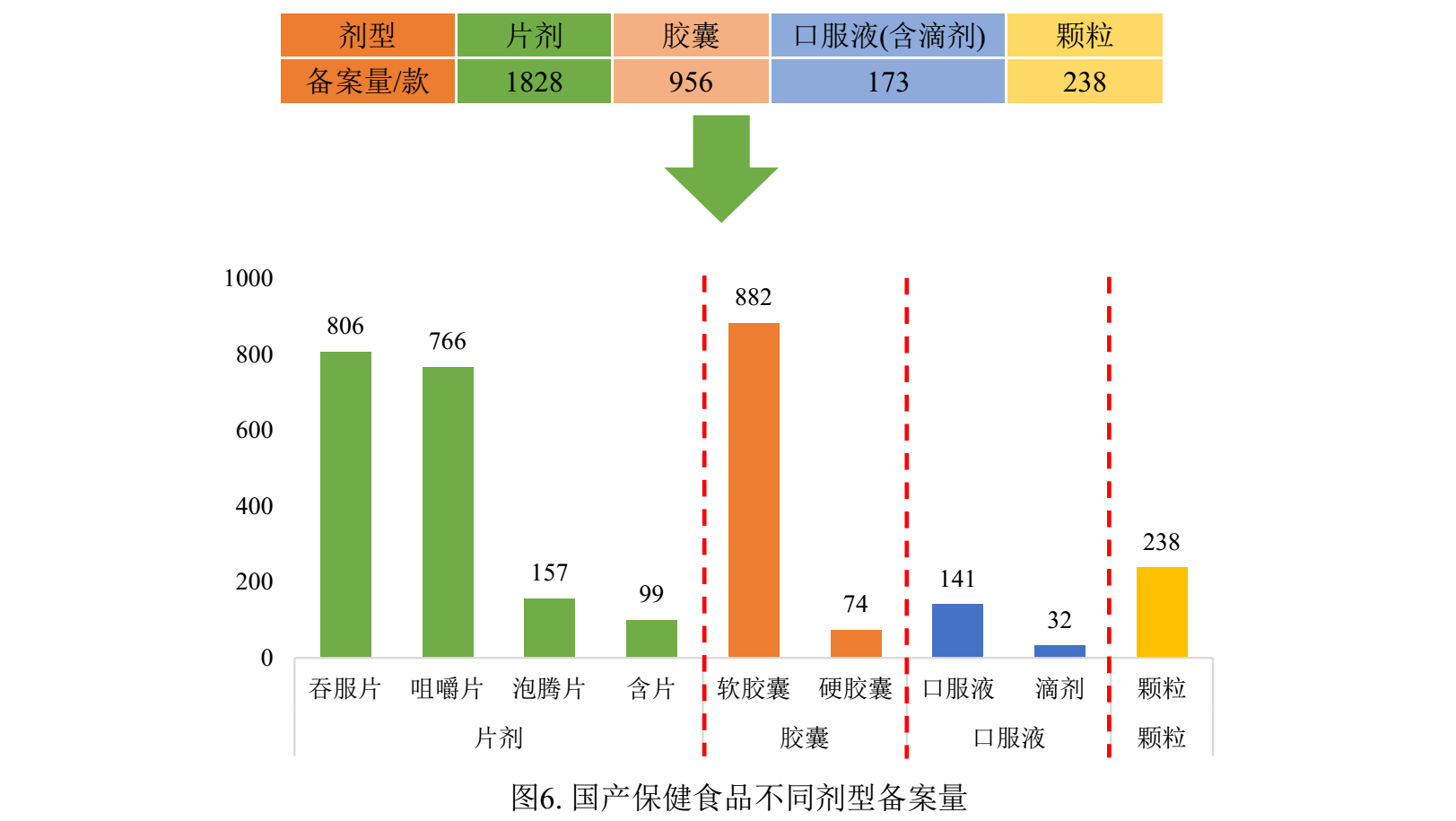 保健食品备案产品剂型目前包括片剂、胶囊、口服液和颗粒。