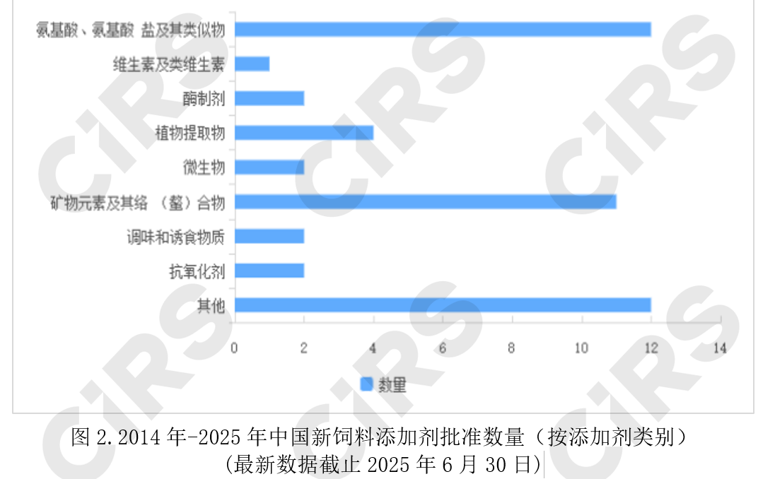 2014年-2025年中国新饲料添加剂批准数量(按添加剂类别)