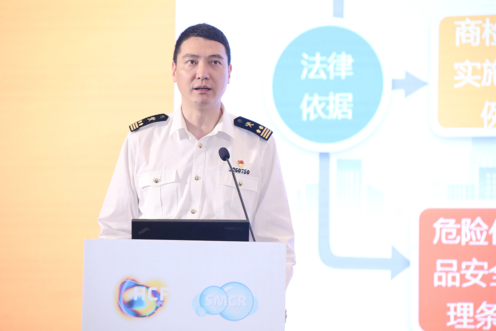 上海海关商品检验处刘峰副处长向参会企业介绍上海口岸进出口危险货物及其包装检验。会上,刘处长重点讲解上海口岸进出口检验的不合格情况,呼吁进口商和国外发货人加强对中国危险化学品管理政策的了解与执行,防范危包不合格风险。