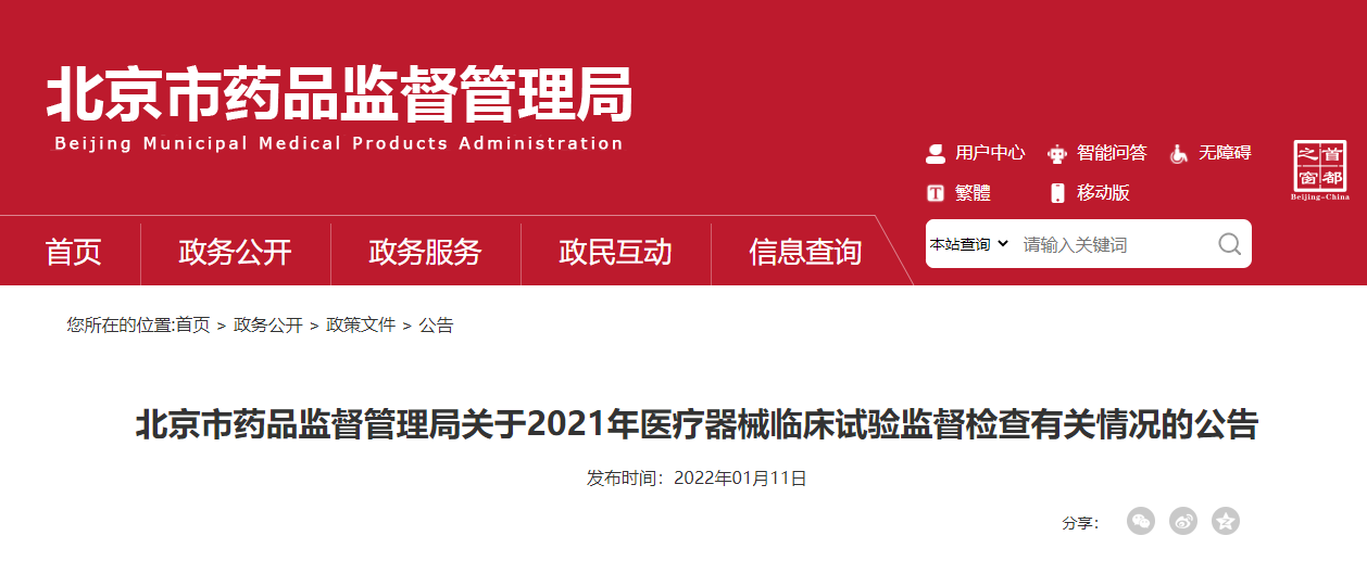 按照北京市药品监督管理局、北京市卫生健康委员会《关于开展2021年医疗器械临床试验机构监督检查的通知》(京药监发〔2021〕131号)和北京市药品监督管理局《关于发布2021年医疗器械临床试验监督抽查项目的通告》(通告〔2021〕2号)要求,2021年,我局对已在国家药监局医疗器械临床试验机构备案管理信息系统进行备案的本市医疗器械临床试验机构开展了全覆盖检查,对5个已备案的医疗器械临床试验项目和涉及的11家临床试验机构开展了监督抽查,现将有关情况和处理结果公告如下: