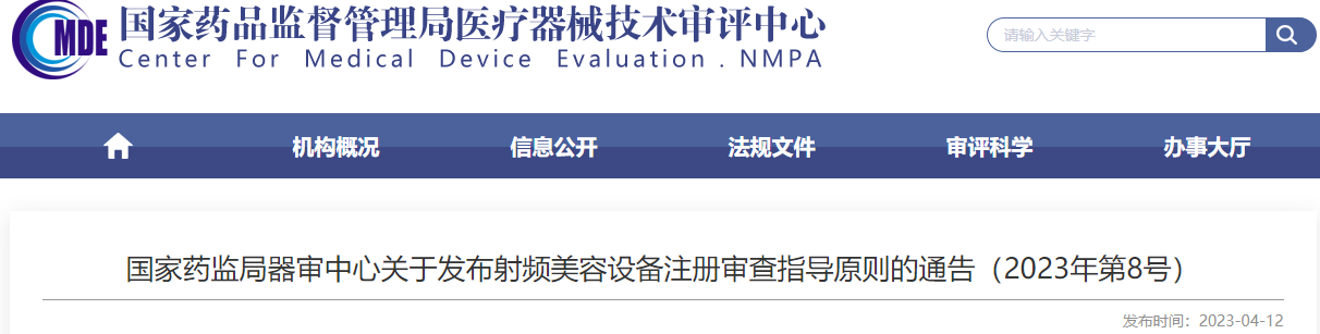 为进一步规范射频美容设备的管理,国家药监局器审中心组织制定了《射频美容设备注册审查指导原则》,现予发布。