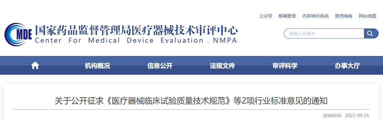 【CMDE】关于公开征求《医疗器械临床试验质量技术规范》等2项行业标准意见的通知