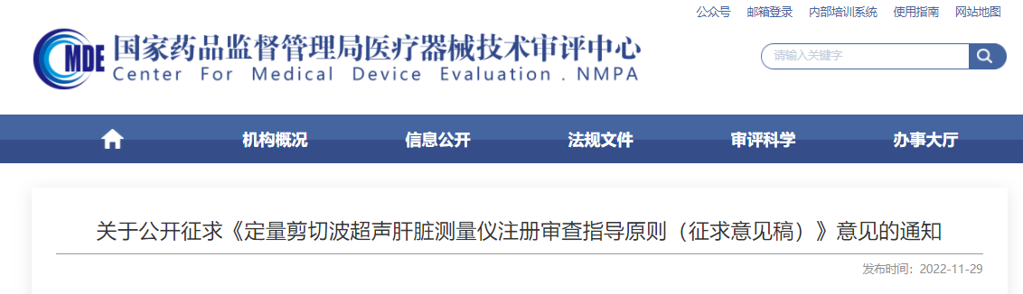 根据国家药品监督管理局2022年度医疗器械注册审查指导原则制修订计划的有关要求,我中心组织编制了《定量剪切波超声肝脏测量仪注册审查指导原则(征求意见稿)》(附件1),即日起在网上公开征求意见。