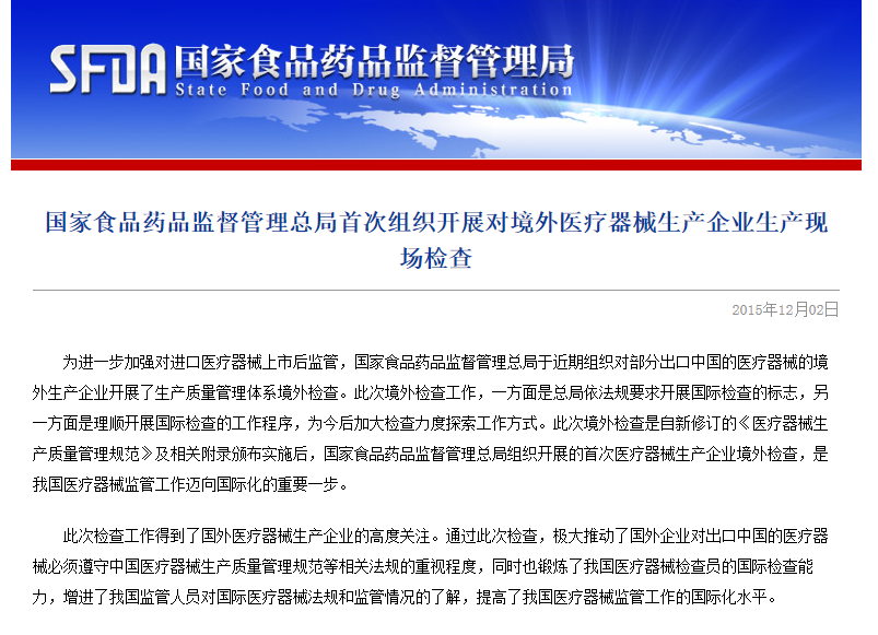 这是小编查到的第一次通报信息,但这并不是第一次对境外生产企业进行现场检查。早在2015年,总局就对境外医疗器械生产企业展开了现场检查,此后每年都有境外检查,只是检查结果一直没有公布。