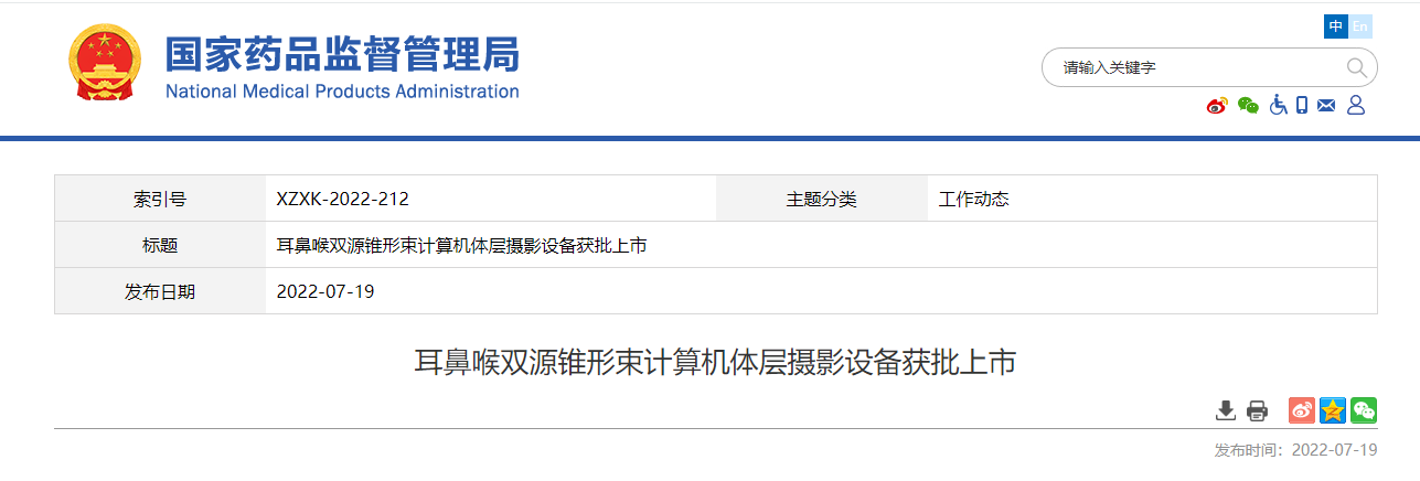 近日,国家药品监督管理局经审查,批准了北京朗视仪器股份有限公司生产的“耳鼻喉双源锥形束计算机体层摄影设备”创新产品注册申请。
