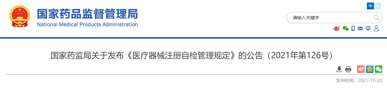 为加强医疗器械注册管理,规范注册申请人注册自检工作,确保医疗器械注册检验工作有序开展,根据《医疗器械监督管理条例》(国务院令第739号)及《医疗器械注册与备案管理办法》(市场监管总局令第47号)、《体外诊断试剂注册与备案管理办法》(市场监管总局令第48号),国家药品监督管理局组织制定了《医疗器械注册自检管理规定》,现予发布,自发布之日起施行。