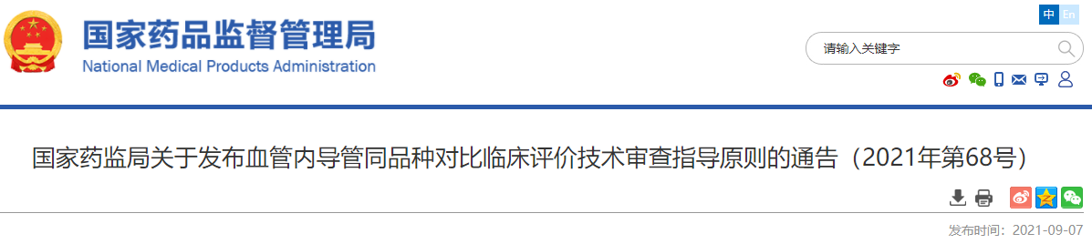 为加强医疗器械产品注册工作的监督和指导,进一步提高注册审查质量,国家药品监督管理局组织制定了《血管内导管同品种对比临床评价技术审查指导原则》,现予发布。