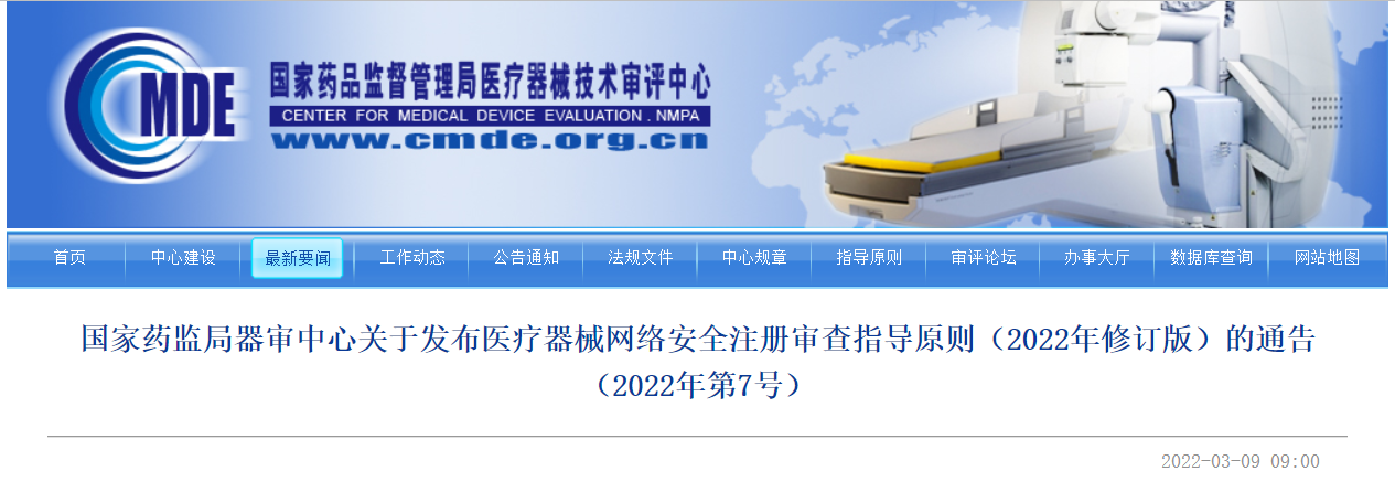 医疗器械网络安全注册审查指导原则(2022年修订版)