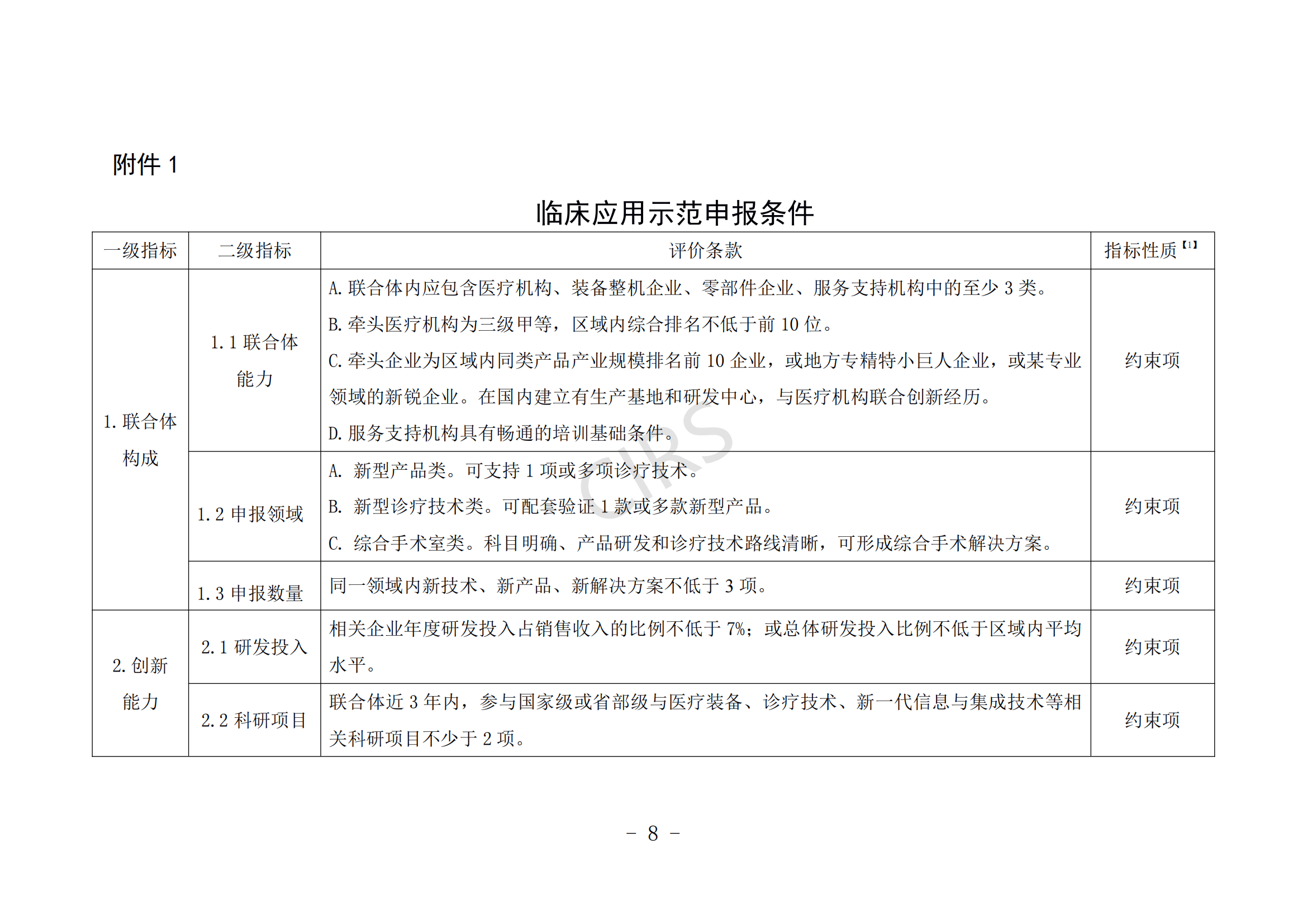(一)临床应用示范由医疗机构牵头,采取“1+N+N”联合体方式申报,即 1 家牵头医疗机构+N 家医疗装备企业+N家联合医疗机构。
