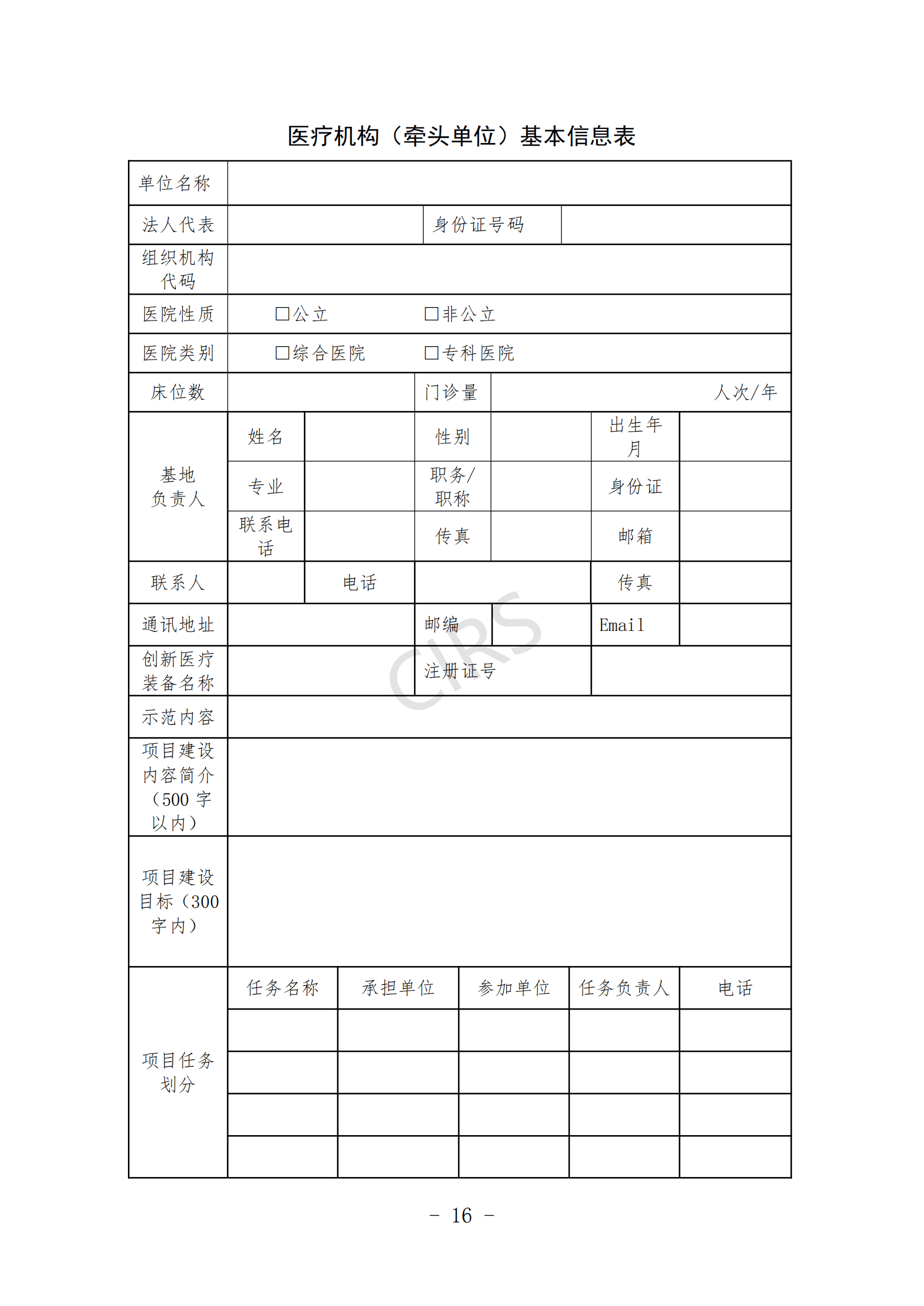 (二)示范基地建设由地方政府(地市级及以下,含产业园区、经济技术开发区、高新技术开发区等)牵头申报,组织医疗机构、医疗装备企业、科研机构等开展合作。