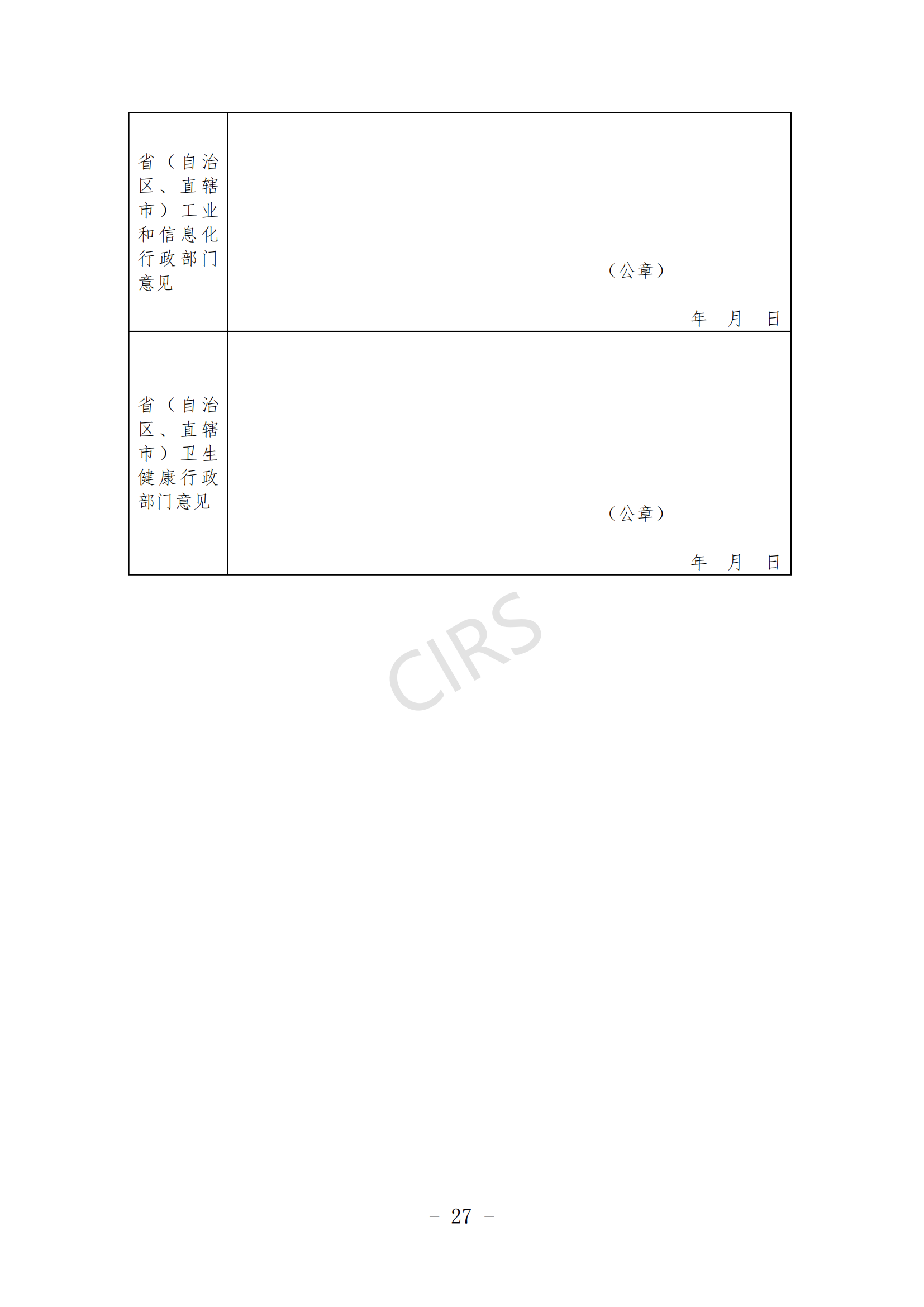 (二)省级工业和信息化主管部门、卫生健康主管部门书面推荐意见。