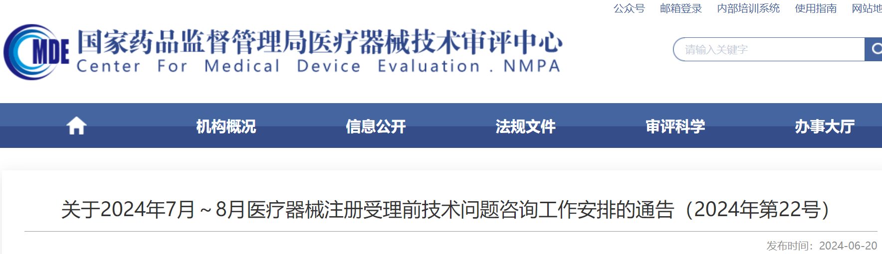 二、2024年7月1日器审中心正式在新址恢复办公,为确保受理前咨询工作顺利平稳过渡,7月5日和7月12日两期受理前技术问题咨询工作仍采用视频会议方式进行,申请人预约成功后,请等待电话通知获取视频会议时间及登录方式。