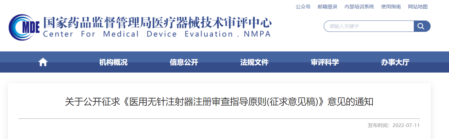 附件:1.医用无针注射器注册审查指导原则(征求意见稿)(下载)