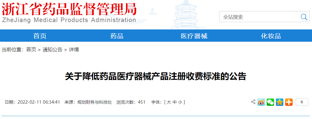 为贯彻落实中央和省委经济工作会议精神,进一步减轻企业负担,提升核心竞争力、激发企业发展活力,确保经济平稳运行,根据《浙江省人民政府办公厅关于减负强企激发企业发展活力的意见》(浙政办发〔2022〕8号)规定,按现行标准的80%收取药品再注册费、医疗器械产品变更注册和延续注册费用。执行期限:2022年1月1日至2023年12月31日。政策截止后收费标准恢复不再另行通知。