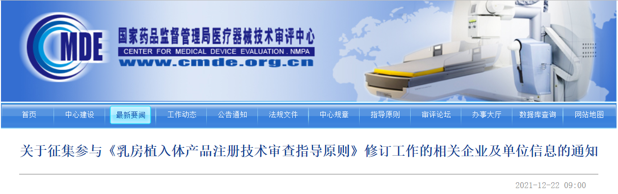 关于征集参与《乳房植入体产品注册技术审查指导原则》修订工作的相关企业及单位信息的通知