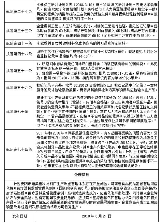 近日,国家药监局官网发布了对对安阳市迪美齿科材料厂飞行检查通报,此次飞行检查共发现严重缺陷4项,一般缺陷8,生产质量管理体系存在严重问题,该企业已被责令停产整改