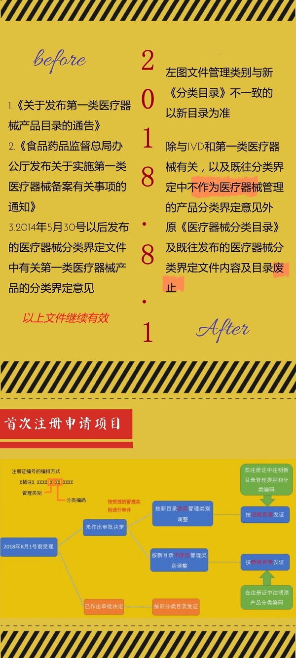 CIRS上周参加了在北京召开的医疗器械行业2017年热点政策研讨会,根据在会议上获得的资料,小编为整理了一张《分类目录》过渡实施的图解,在此分享。