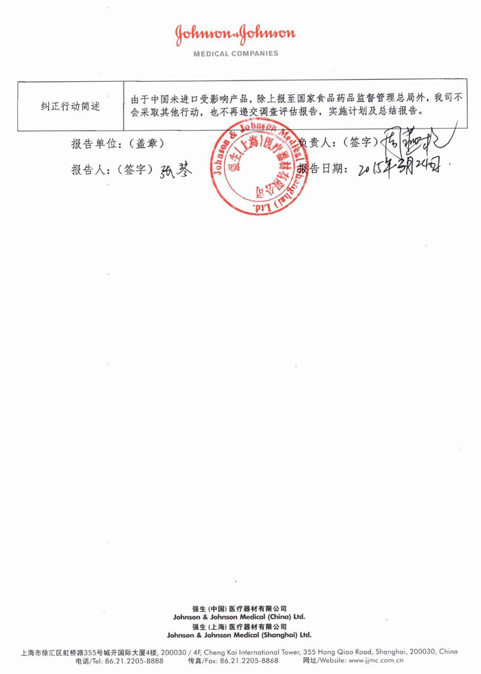 强生(上海)医疗器材有限公司报告,该公司代理的脊柱外科植入物—胸腰椎固定系统〔注册证号:国食药监械(进)字2012第3460787号(更)〕由于脊柱外科植入物—胸腰椎固定系统中特定型号和批号的横向连接夹不能与6mm纵向棒牢固连接,可能导致手术延迟,其生产商瑞士Synthes GmbH公司对该产品进行主动召回。该公司称本次召回产品未在中国销售。请各省、自治区、直辖市食品药品监督管理局加强对此类产品的监督管理。