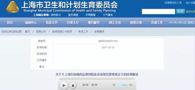 12月12日,上海市卫计委发布关于《上海市加强药品使用信息系统规范管理规定》的政策解读(下称管理规定)。