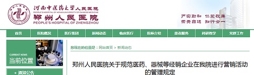 8月28日,河南省郑州人民医院新鲜出炉了《郑州人民医院关于规范医药、器械等经销企业在我院进行营销活动的管理规定》。