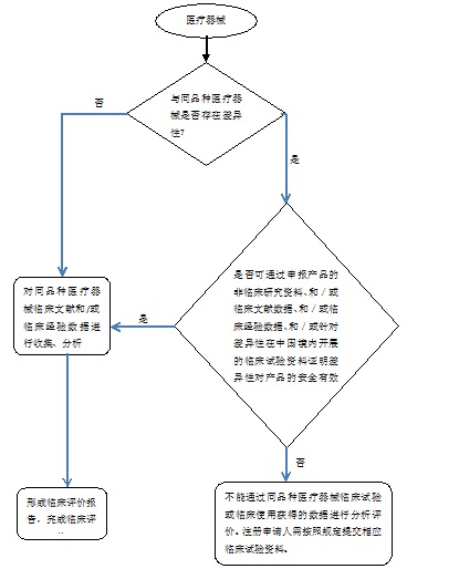 注册申请人通过同品种医疗器械临床试验或临床使用获得的数据进行分析评价,证明医疗器械安全、有效的,需首先将申报产品与一个或多个同品种医疗器械进行对比,证明二者之间基本等同。三、同品种医疗器械评价路径