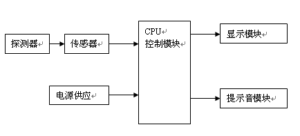 一般由探测器(探头保护套附件)、传感器、CPU控制模块、显示模块、提示音模块、电源供应模块组成。