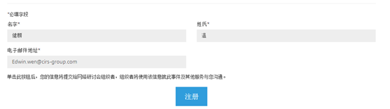 注意:请按要求填写内容,确保邮箱地址准确,我们会将会议链接发至您的邮箱,请注意接收邮件。