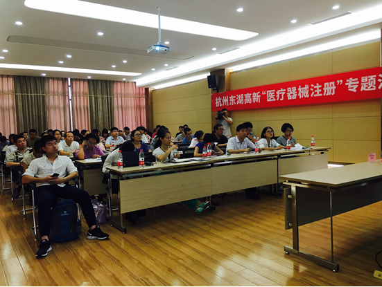 2016年9月23日下午,瑞旭技术应邀参加由余杭生物医药高新技术产业园区、余杭生物医药产业协会、杭州东湖高新投资有限公司联合举办“新法规对医疗器械注册、临床试验和质量体系的要求”专题沙龙活动,杭州瑞旭产品技术有限公司医疗器械注册项目经理黄晨玥、医疗器械注册工程师孟钰蝉对相关政策进行了解读,会议吸引了60多位医疗器械生产企业代表参加。