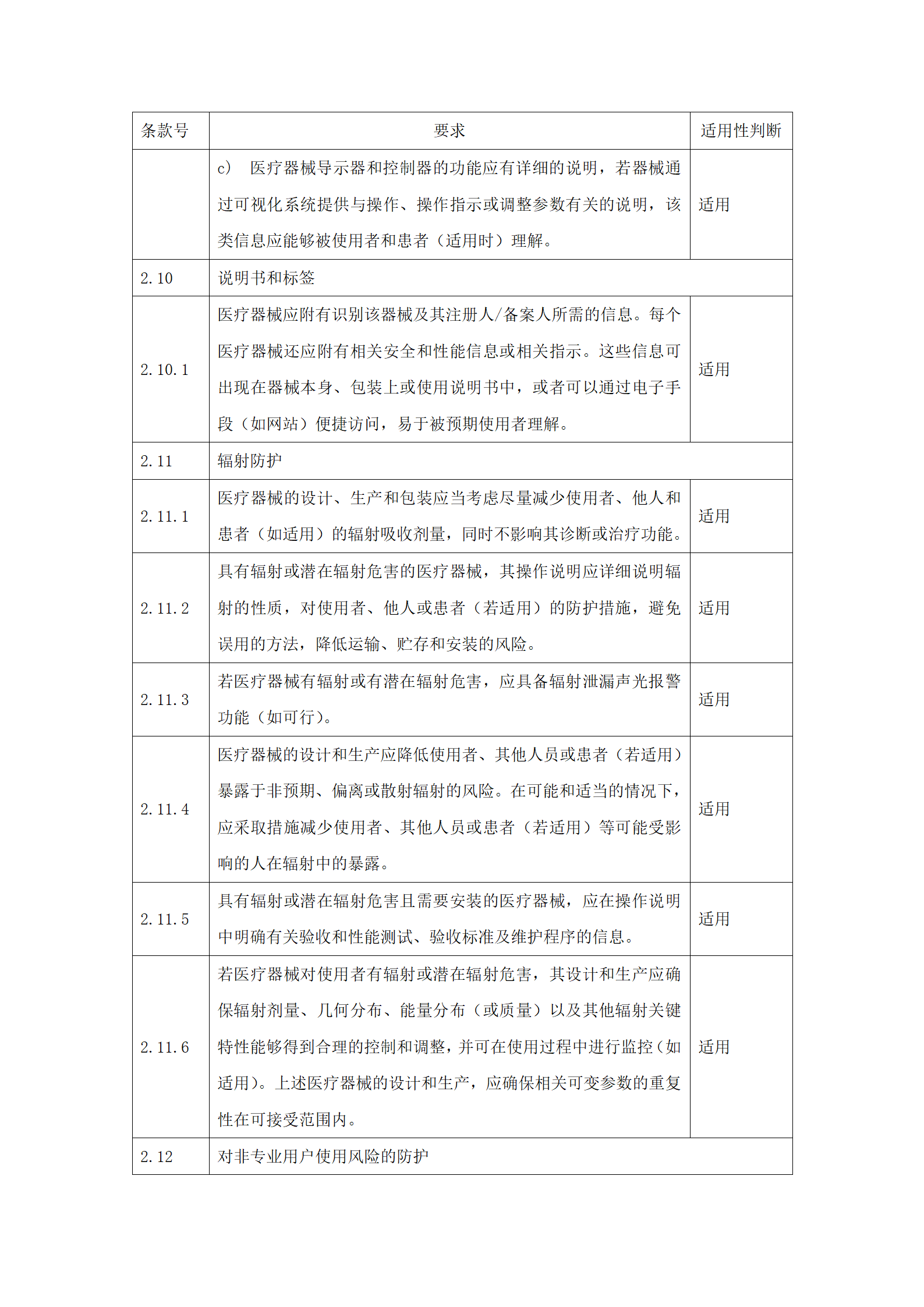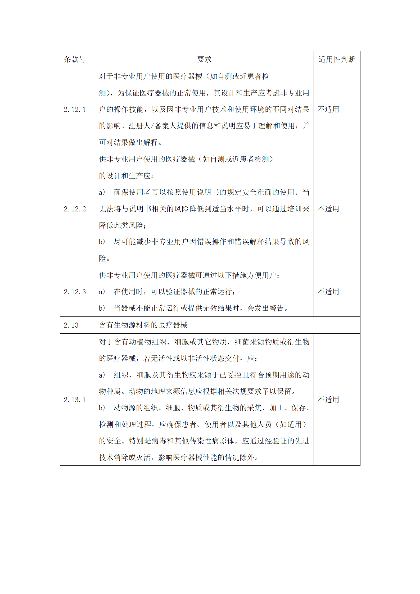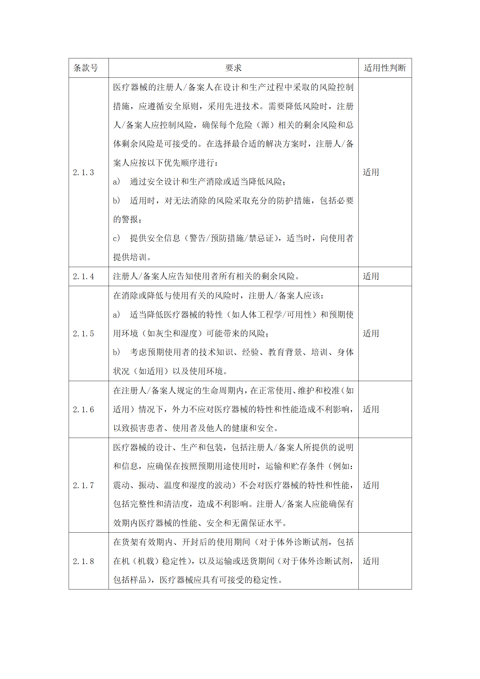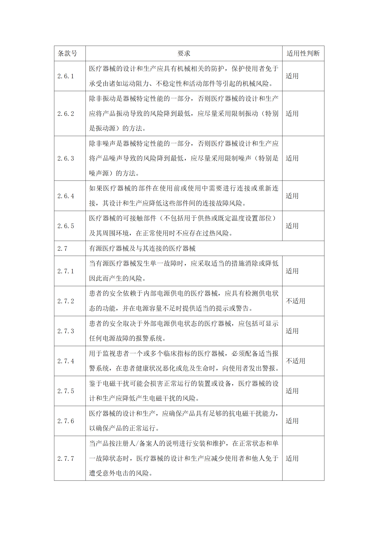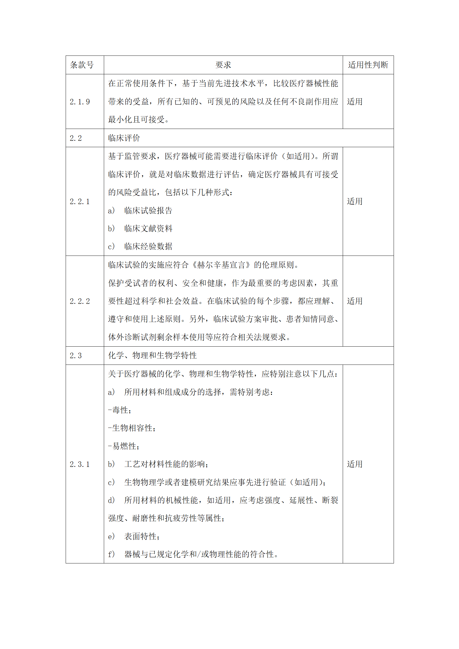 应明确申报产品对《医疗器械安全和性能的基本原则》(附件2)中各项要求的适用性。对于不适用的要求,应当逐项说明不适用的理由。对于适用要求,应逐项说明为符合要求所采用的方法,以及证明其符合性的文件。关于证明各项要求符合性的文件,如果包含在产品注册申报资料中,应当说明其在申报资料中的具体位置。对于未包含在产品注册申报资料中的文件,应当注明该证据文件名称及其在质量管理体系文件中的编号。