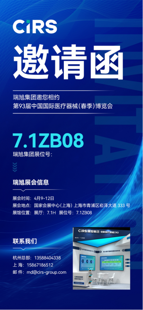 4月9日!瑞旭邀您相约第93届中国国际医疗器械(春季)博览会--展位号:7.1ZB08