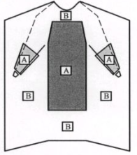 手术衣的前胸和袖部至少应有关键区域,如图2所示的A区域和B区域。