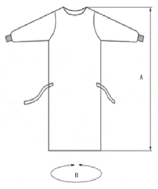 手术衣的横向尺寸应能将适用体形的医生除头部以下的周身全部覆盖,以起到组织医生皮屑向手术区域弥撒的作用。制造商应给出手术衣尺寸的图示和规格,以供使用者选择。