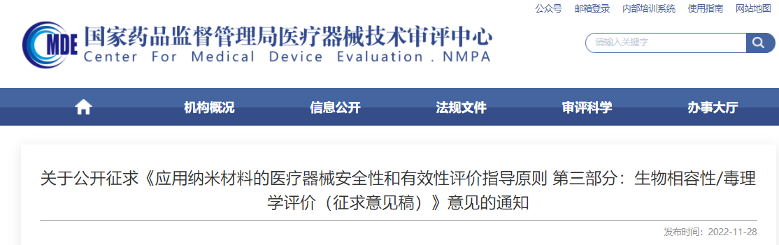 1.应用纳米材料的医疗器械安全性和有效性评价指导原则 第三部分:生物相容性/毒理学评价(征求意见稿)(下载)