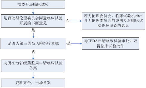 • 相关药监部门接受备案后将备案信息报送CFDA医疗器械注册管理司并且通报临床试验机构所在地的同级食品药品监督管理部门和卫生计生主管部门。