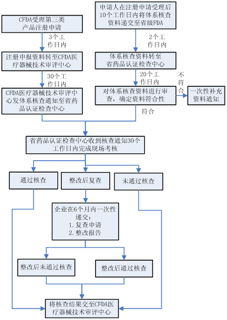 第三类医疗器械注册体系核查,其流程如下: