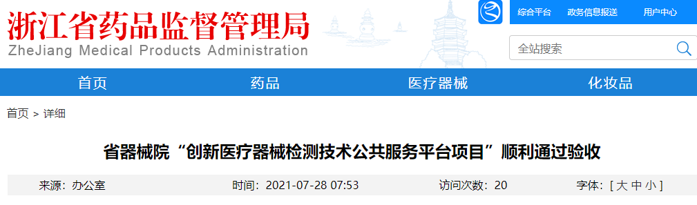 7月26日上午,浙江杭州未来科技城双创示范基地重大项目——《创新医疗器械检测技术公共服务平台》项目顺利通过综合验收。