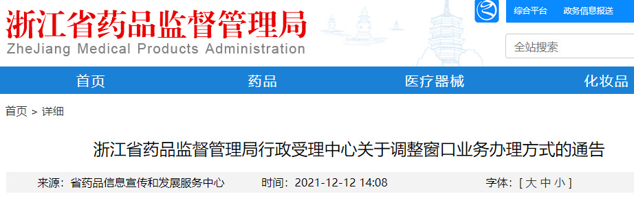 根据我省新冠疫情防控工作需要,最大限度减少人员流动聚集,经研究,自2021年12月13日起,浙江省药品监督管理局行政受理中心窗口业务作如下调整: