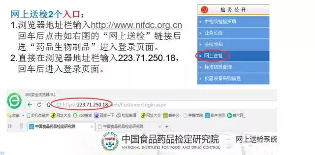 (一)送检客户通过我院外网(www.nicpbp.org.cn)左侧 “检务公开”下的“网上送检”登录系统。