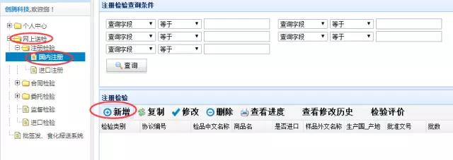 如国内注册检验的样品,依次点击“网上送检--国内注册--新增”,如下图