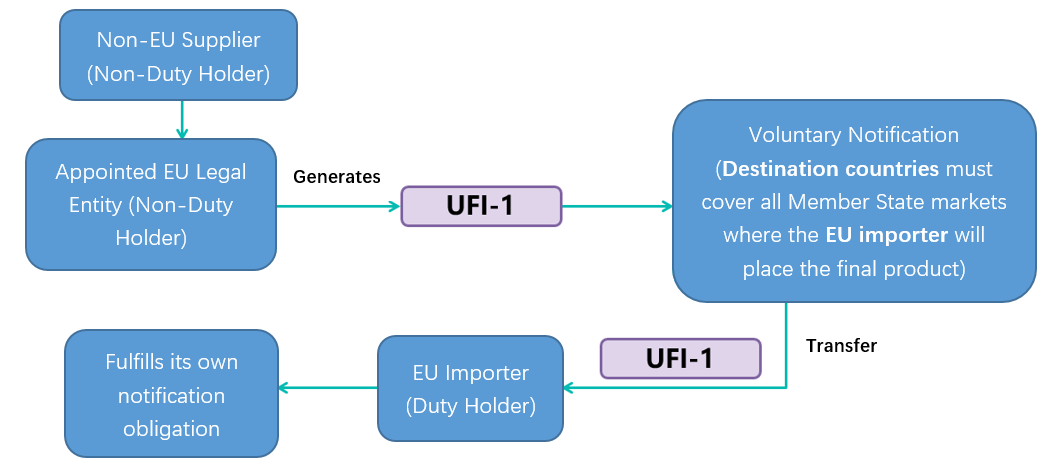 Non-EU suppliers seeking to protect their formulations may appoint a legal entity within the EU to complete voluntary notification. By transferring the notified UFI to the importer, formula disclosure can be avoided.