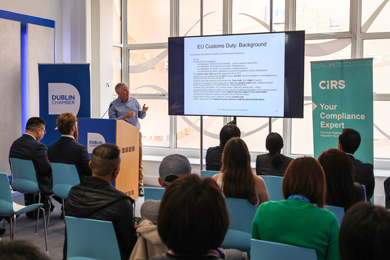 On May 28, we were delighted to join forces with the Dublin Chamber to host a highly successful seminar focused on chemical and product compliance. The event attracted ambassadors from many countries to Ireland, representatives of well-known companies, and policy experts to discuss the latest EU regulatory trends and jointly seek compliance solutions. The event was supported by IDA Ireland, Dublin Chamber, and the Dublin Lean Network.