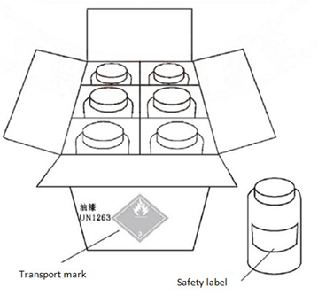 For combination packaging: the inner package should be affixed with safety label and the outer package should be affixed with transport label.