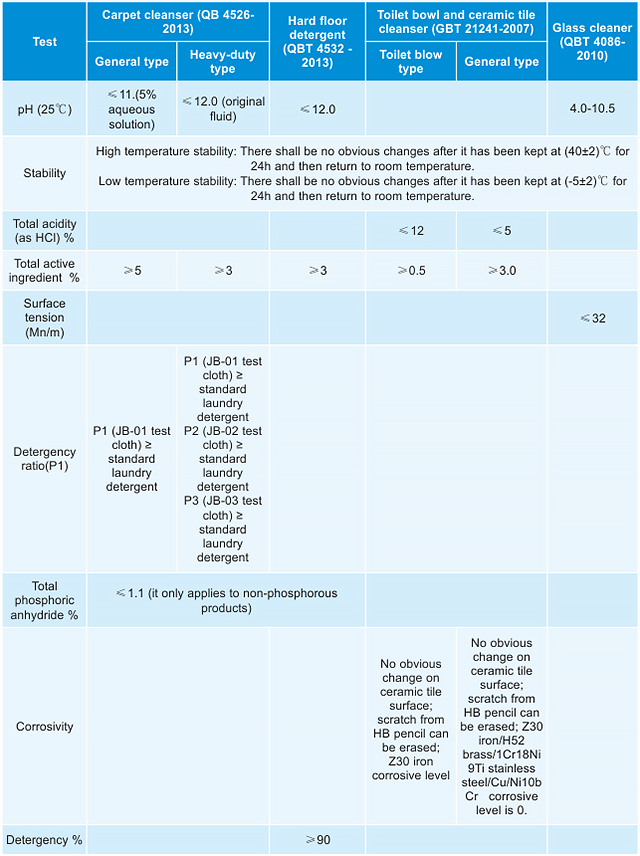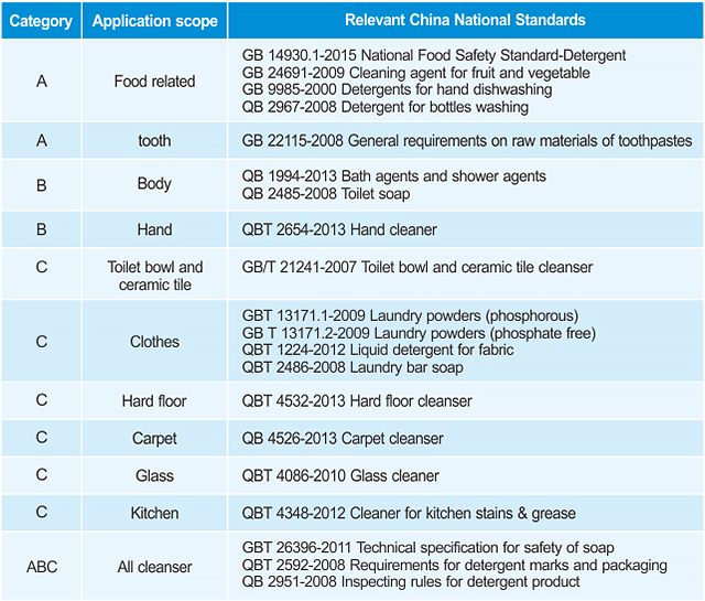 Detergents/cleaners will be regulated by different China national standards according to categories. We summarised current national standards corresponding to each category in following table for your reference.