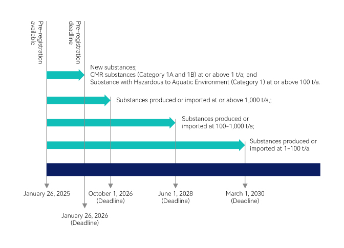 The full registration deadline is divided into four phases based on the tonnage and hazard level of the substances: