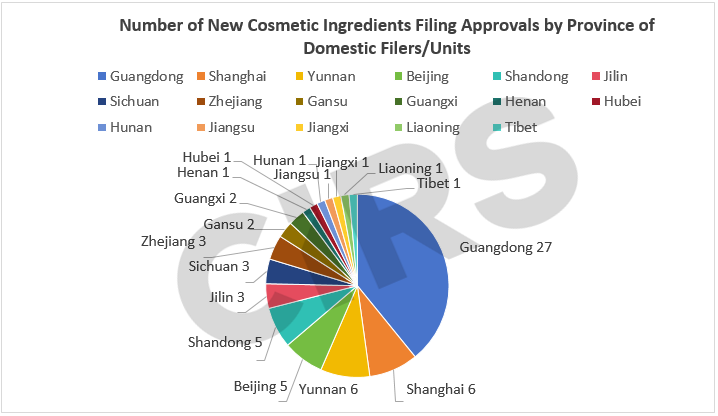 III. Distribution of Domestic Enterprises Filing for New Cosmetic Ingredients by Province